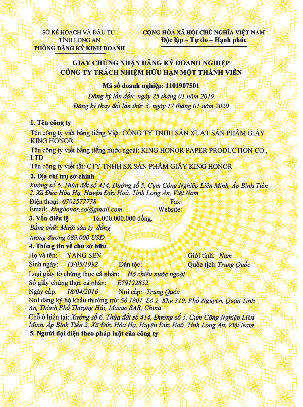 King Honor Paper Production Co., Ltd. Was set up in 2018. Since it was founded, adhere to people-oriented, the principle of sincerity, to combined the domestic advanced technology,management methods and experience with vietnam local actual, make Vietnam branch always remain competitive in the fierce market competition, achieve a stable development.